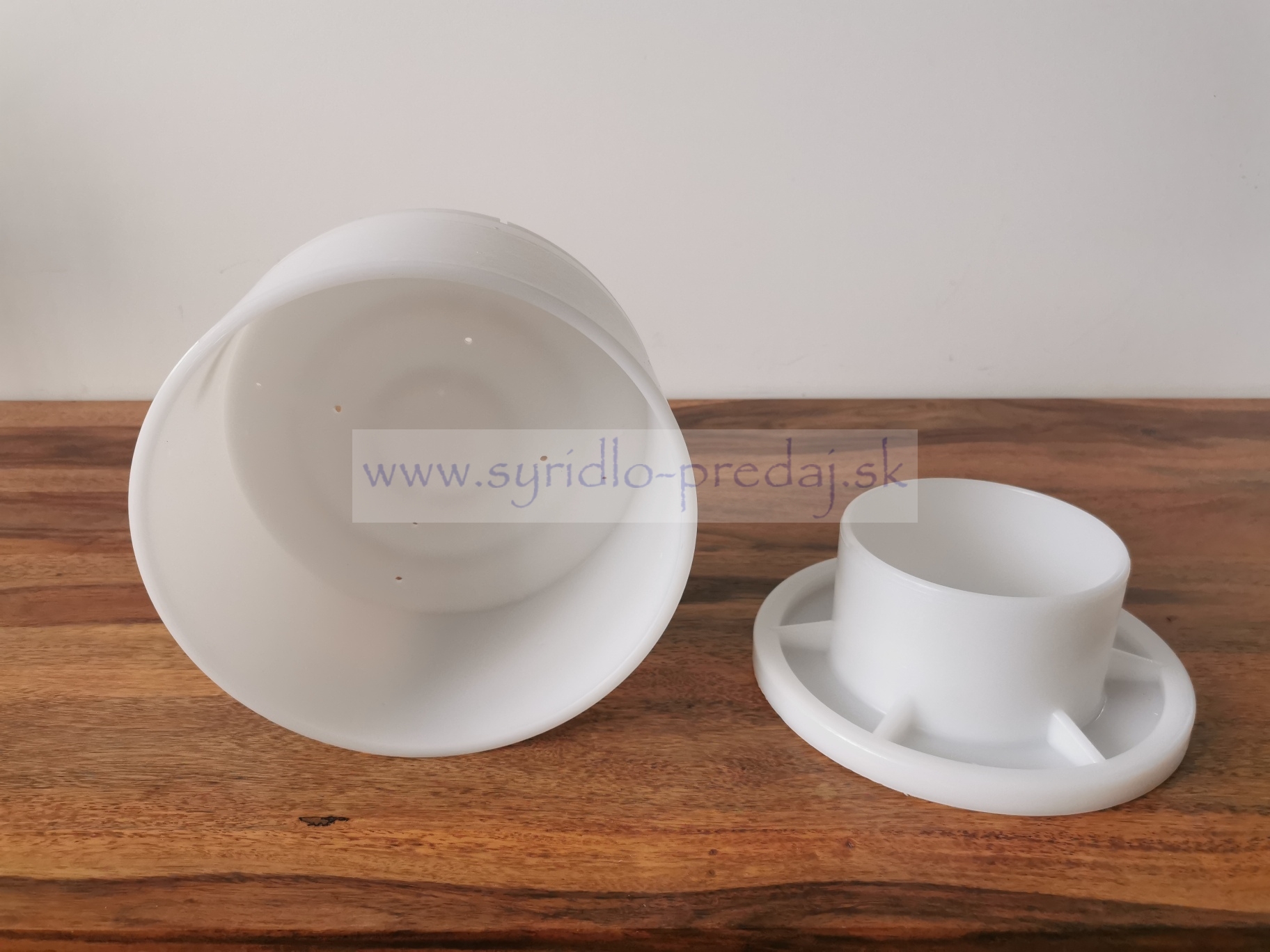 Syrárska forma s vrchnákom typu TOMME, PAULIN, MANCHEGO na výrobu polotvrdých, tvrdých, dohrievaných a lisovaných syrov.