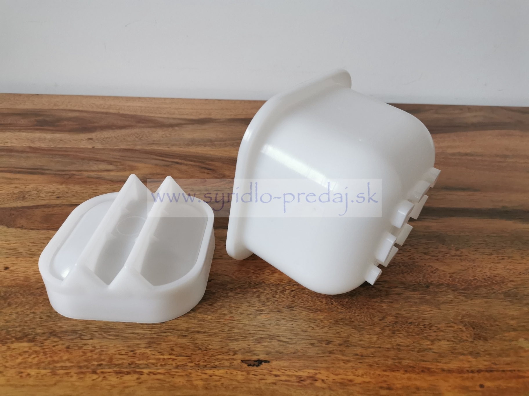 Syrárska forma s vrchnákom Štvorcová na výrobu polotvrdých, tvrdých, dohrievaných a lisovaných syrov. .